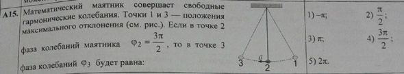 Яўген Лівянт: Вось задача А15. Мы бачым тут матэматычны маятнік. І фраза: кропкі 1 і 3 у «становішчы максімальнага адхілення». У фізіцы няма такога паняцця! Ёсць «максімальнае адхіленне ад становішча раўнавагі», і кожны фізік здагадаецца, пра што гаворка.