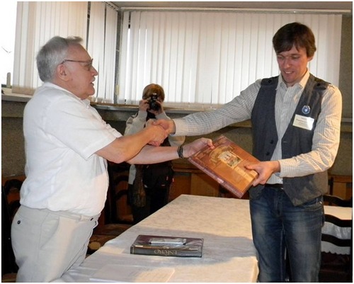 Даша Куракса (11 клас школы № 21 Бабруйска) заняла ІІІ месца. Дыплом уручае прадстаўнік рэктарата Аляксей Лаўшук, дэкан педагагічнага факультэта. Бацька Дашы хоча пакінуць урачысты момант на сваім мабільніку.