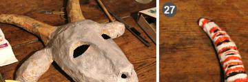 14. Вось, нешта такое атрымліваецца! Цяпер яно гатовае для далейшых дзеянняў. Тут з вопыту варта дадаць – рабіце казу вясёлай, бровы дугой, бо дзеці сур’ёзна ставяцца да пераапрананняў. Калі маска пагрозліва хмурыць бровы, яны проста палохаюцца.