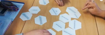 «Мы вымушаны нешта мяняць, трансфармуецца сутнасць адукацыі», – падкрэсліла спікерка. Напачатку майстар класа Ала Мікалаеўна раздала ў аўдыторыі, якая была загадзя падзелена на групы, камплект з 14 гексаў. Задача групы – за 2 хвіліны выбраць 7 з найбольш істотнымі ключавымі кампетэнцыямі. Сярод надпісаў на гексах былі медыяадукацыя, кампетэнтнасны падыход, глабальная інфарматызацыя, крытычнае мысленне, уменне прымаць рашэнні ў нестандартнай сітуацыі.