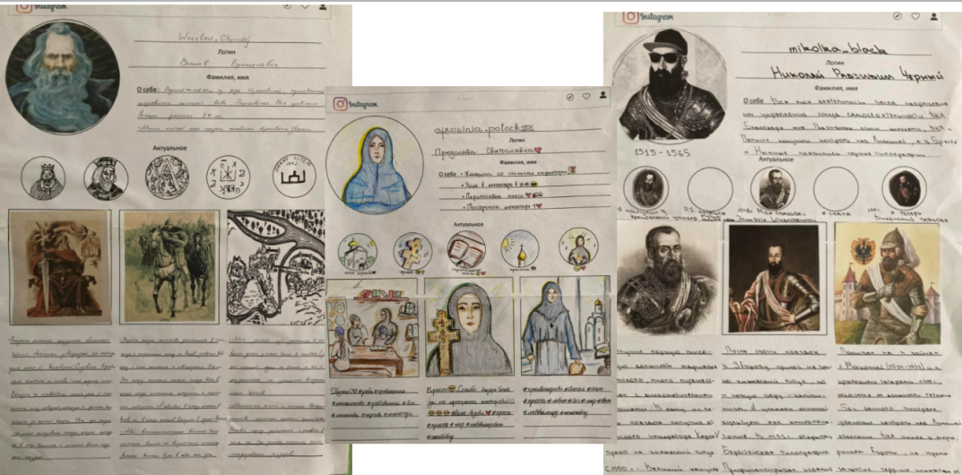 Задача: зрабіць Інстаграм старонку беларускага гістарычнага, культурнага, літаратурнага дзеяча. Некаторыя малявалі, некаторым мы давалі прататып. Фантазія і выбар менавіта дзяцей. Работы 6-11 класаў.